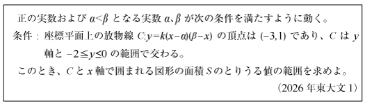 [B]開き方に幅がある放物線の面積公式の問題(2026年東大文1)