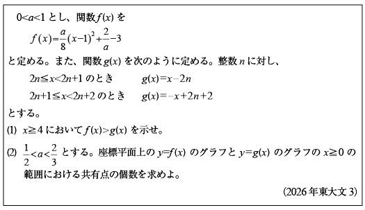 [C]ノコギリ歯と放物線の大小関係と交点数の問題(2026年東大文3)