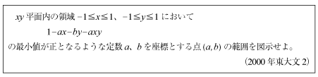 [D]2変数関数が正値を返すab平面領域の図示の問題(2000年東大文科2)