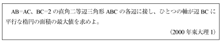 [B]直角二等辺三角形に内接する楕円の面積の最大値の問題(2000年東大理1)