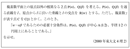 [C]2つの複素数が円上にあることを示す問題(2000年東大文4理2)