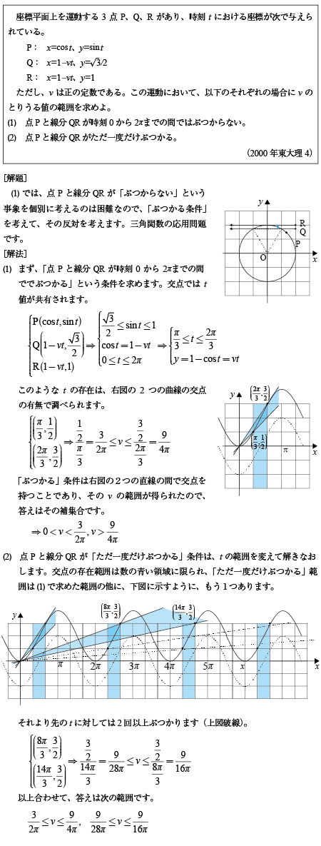 [C]三角関数を含む方程式をグラフを使って解く問題(2000年東大理科4)