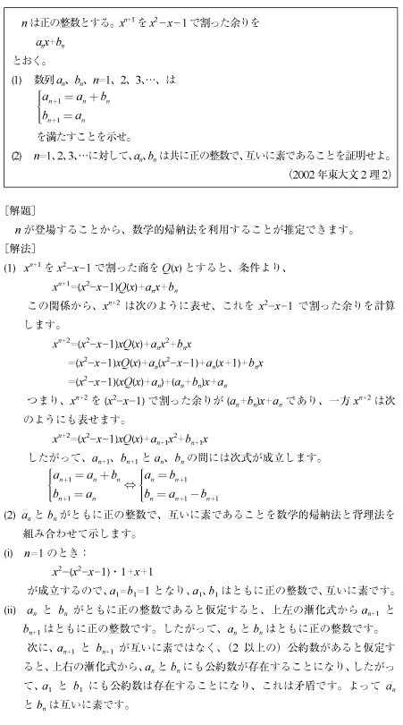 [B]数式の割り算で生ずる数列のやさしい問題(2002年東大文2理2)