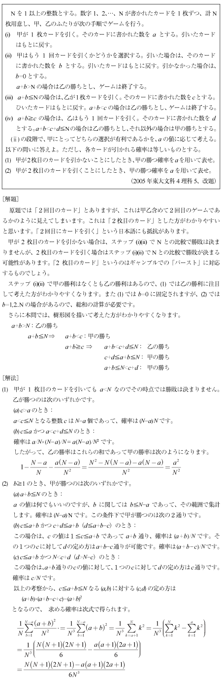 [D]ゲームの確率の数列和の難しい問題(2005年東大文4理5)