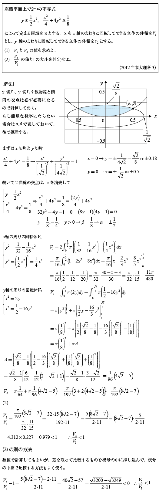 [B]楕円と放物線の囲む領域の回転体の体積の問題