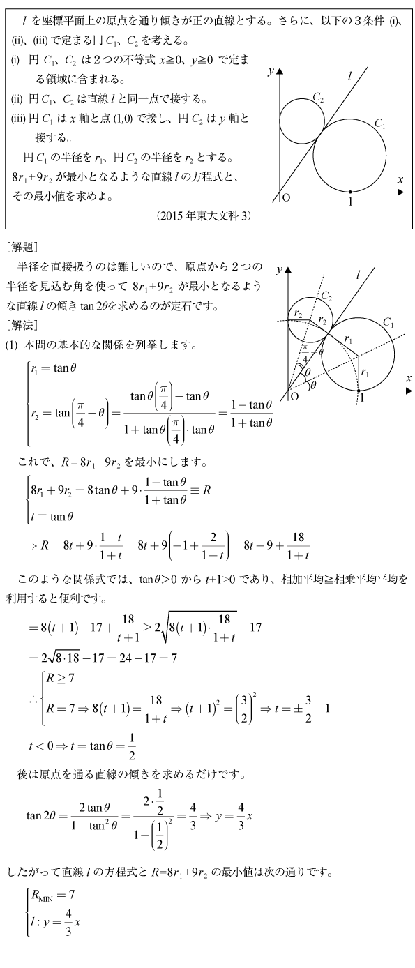 [B]tan加法定理を利用する問題(2015年東大文科3)