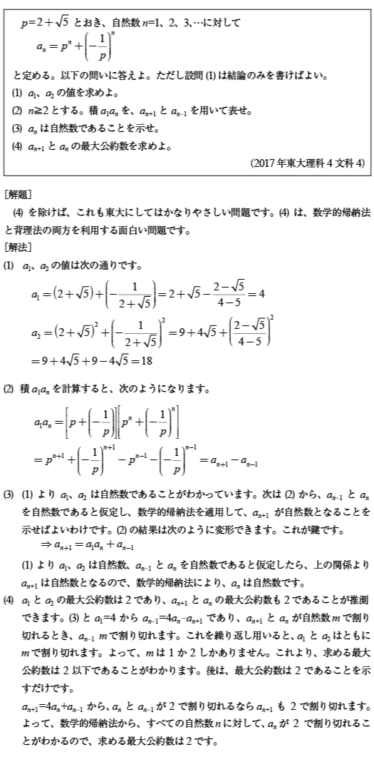 [B]背理法と数学的帰納法で証明する数列の問題(2017年東大文4理4)