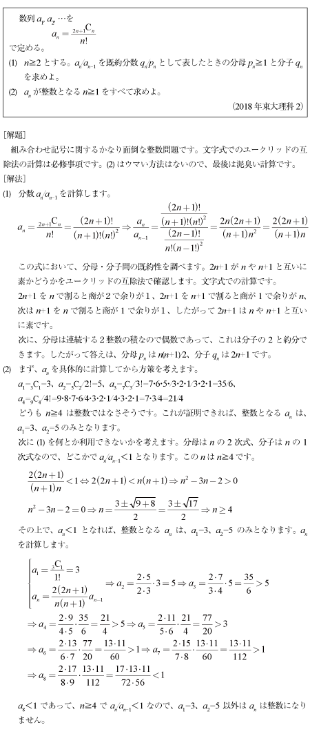 [C]組合せ記号に関する整数問題(2018年東大理科2)