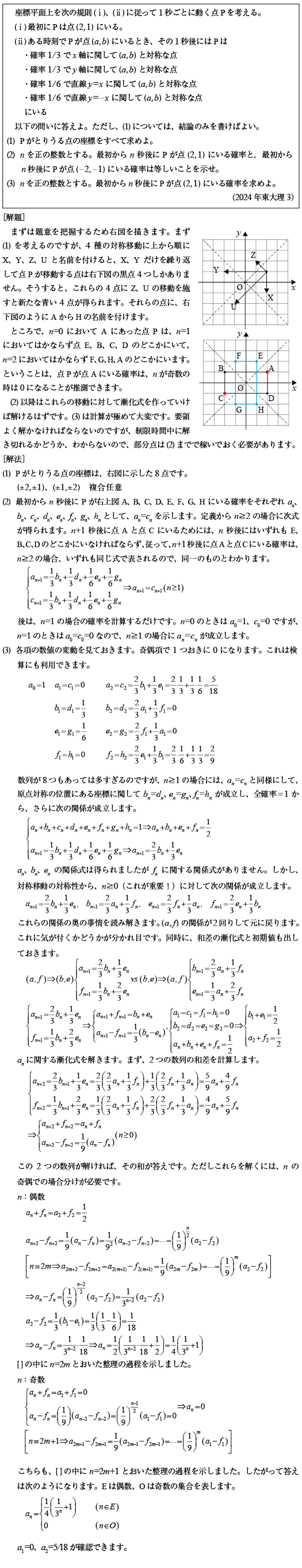 [C]座標上の対称移動に関する確率漸化式の問題(2024年東大理3)