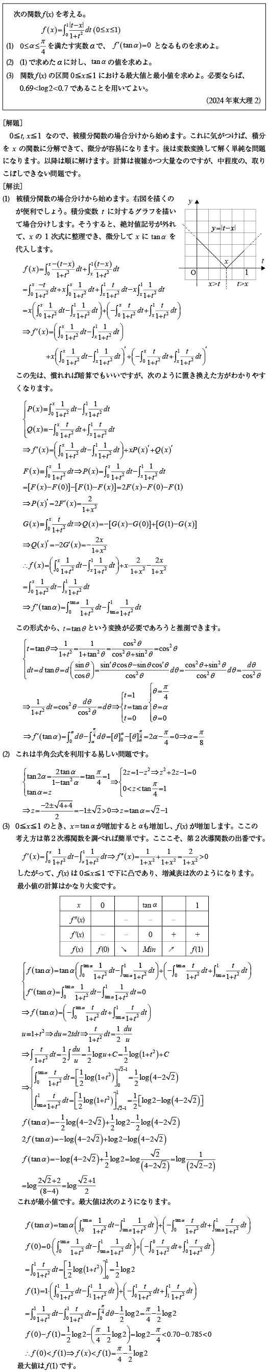 [B]絶対値記号付き積分の応用問題(2024年東大理2)