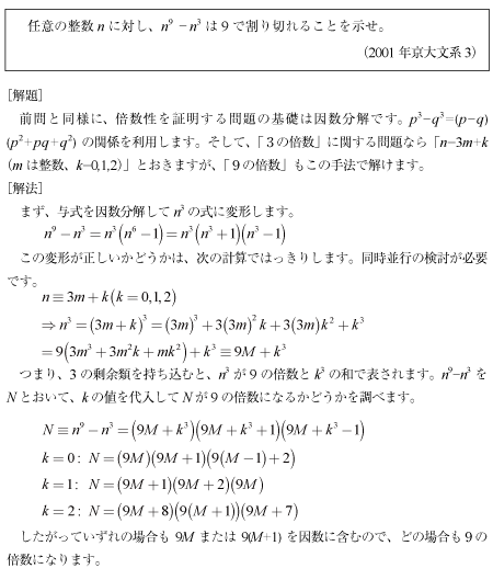 [B]3の剰余類を利用して倍数性を証明する問題(2001年京大文系3)