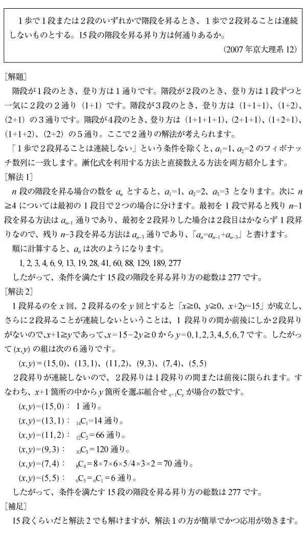 [B]階段の昇り方の数を数える問題(2007年京大理系12)