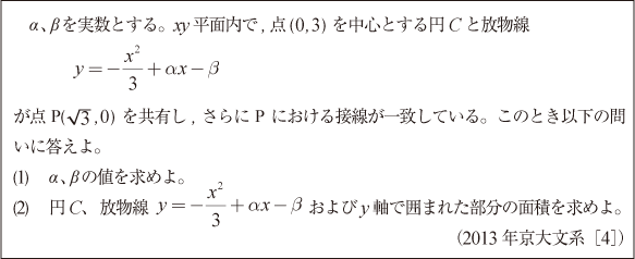 [B]円と放物線が囲む面積の問題(2013年京大文系4)