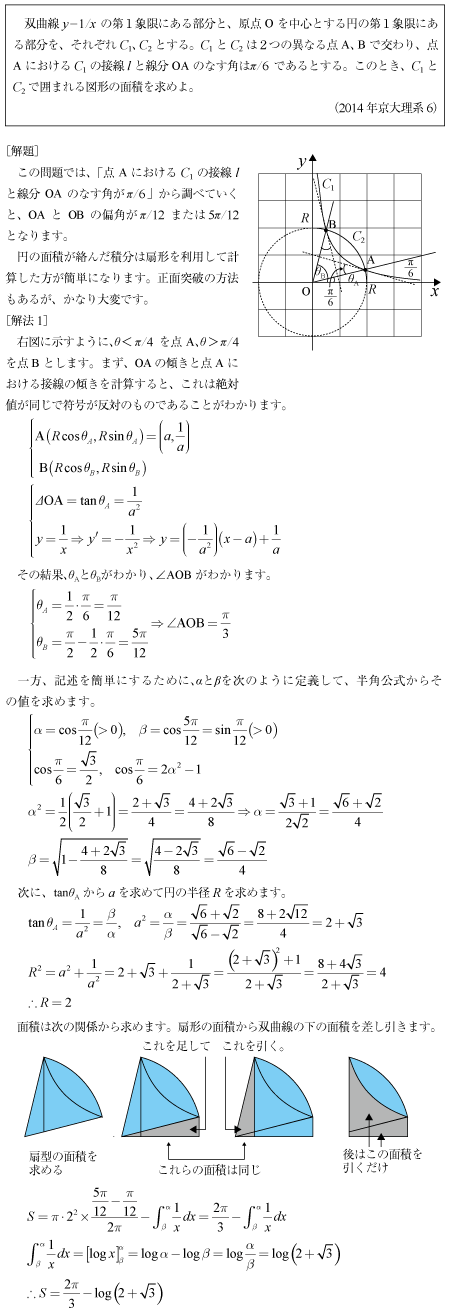 [C]円と双曲線が囲む領域の面積を求める問題(2014年京大理系6)