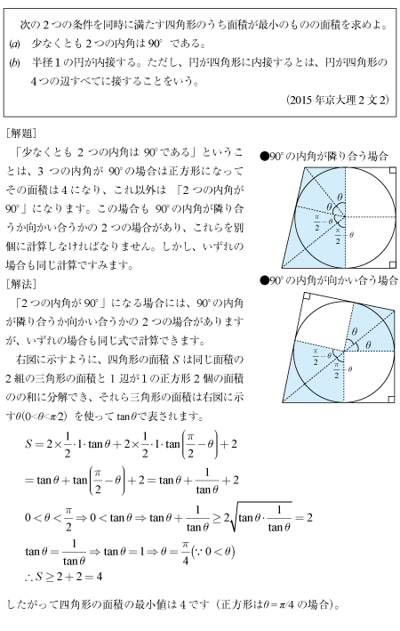 [B]tanと相加平均≧相乗平均を利用する問題(2015年京大文2理2)