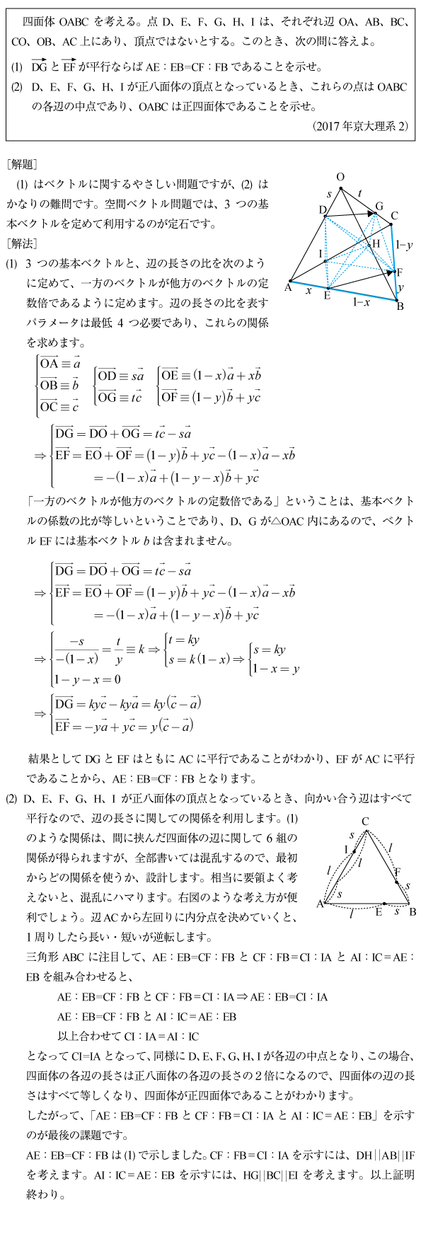 [C]正四面体の中の正八面体の問題(2017年京大理系2)