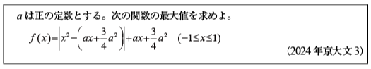[C]絶対値記号付きの2次関数の最大値の問題(2024年京大文3)