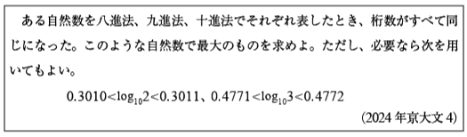 [C]対数不等式を解く問題(2024年京大文4)
