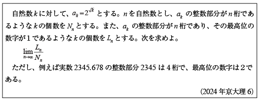 [D]2の無理数乗で挟まれる整数の個数の極限の問題(2024年京大理系6)