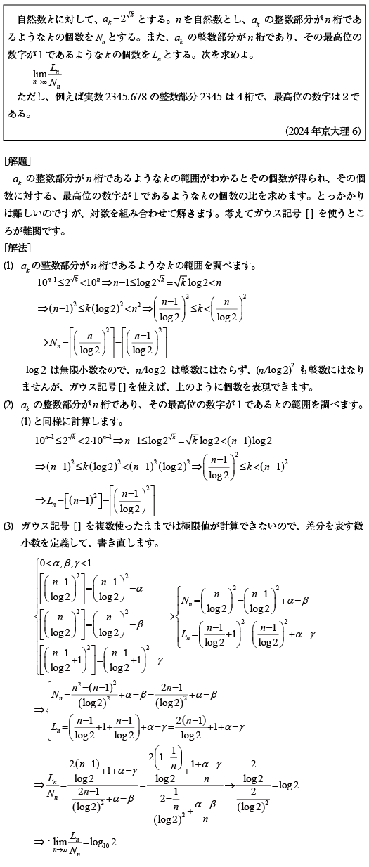 [D]2の無理数乗で挟まれる整数の個数の極限の問題(2024年京大理系6)