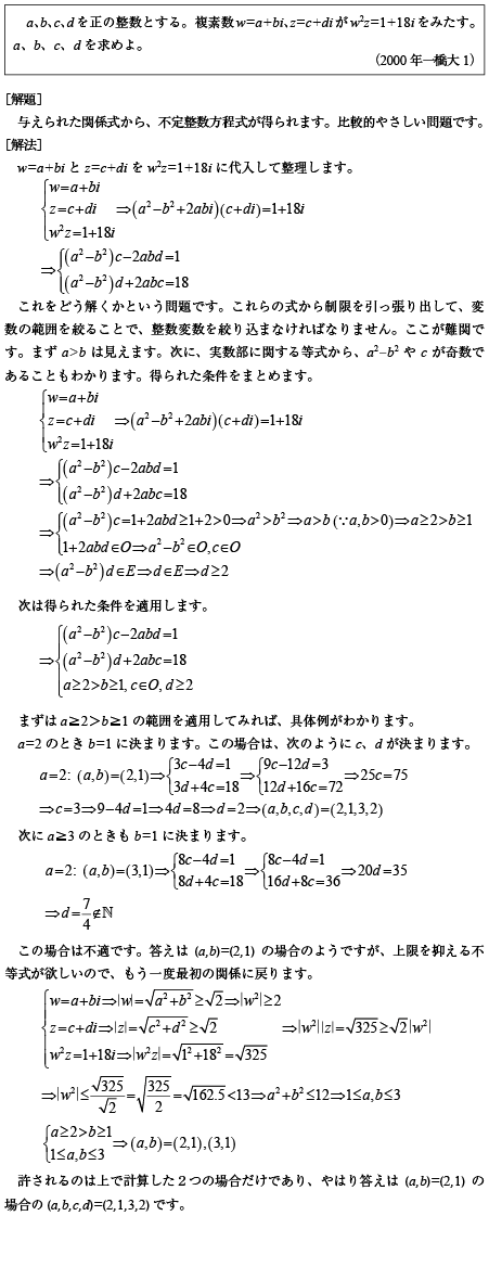 [C]複素数平面における整数不定方程式問題(2000年一橋大1)