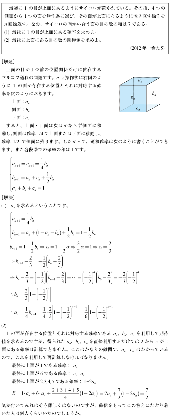 [C]さいころの上面の目の期待値の連立漸化式の問題
