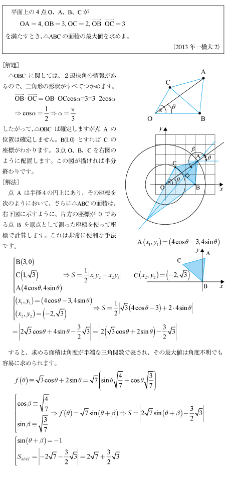 [C]三角形の面積を半端な変数値で最大化する問題(2013年一橋大2)
