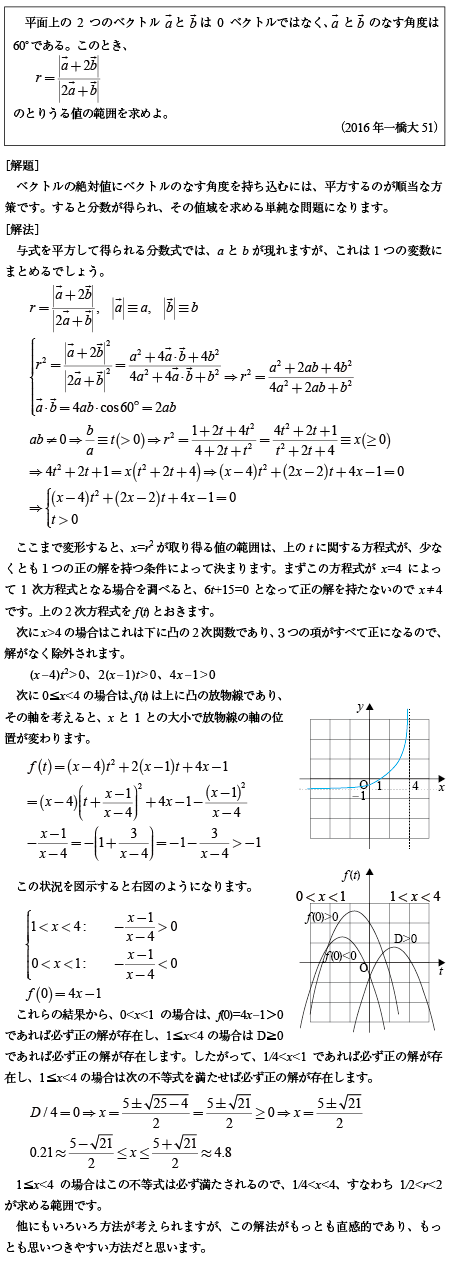 [C]ベクトルの大きさの比の値域の問題(2016年一橋大51)