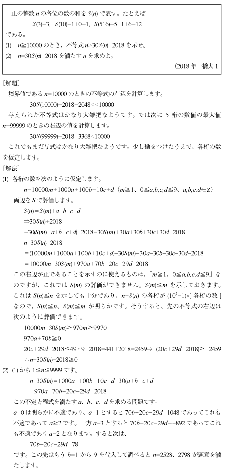 2018年一橋大 第1問