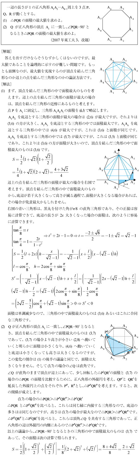 [C]正八角形の周上に頂点を持つ三角形の面積の問題