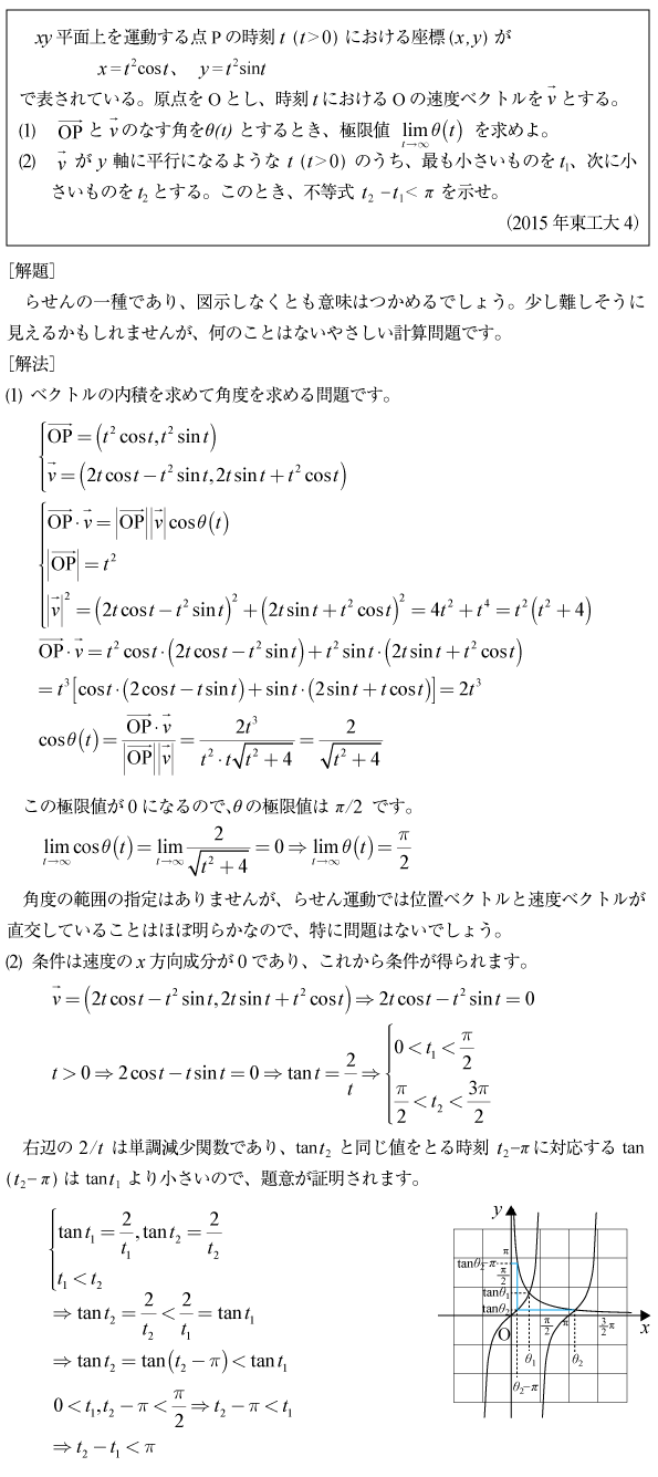 [C]極座標表示曲線の速度ベクトルの問題(2015年東工大4)
