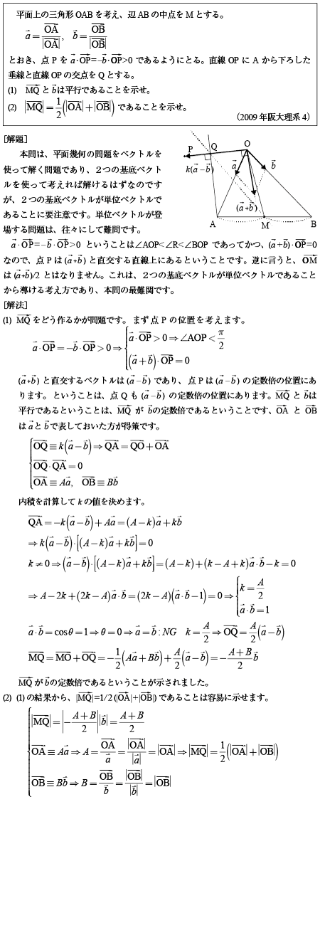 [C]単位ベクトルを使う三角形の問題(2009年阪大理系4)