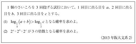 [B]さいころを3回投げる条件充足確率の問題(2013年阪大文系2)