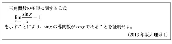 [B]sinx/xの極限の問題(2013年阪大理系1)