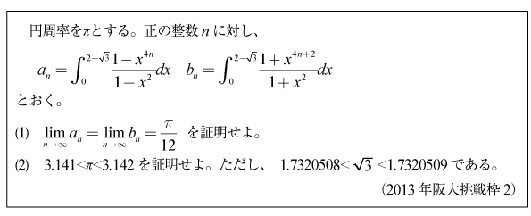 [E]はさみうちの原理で円周率を評価する問題(2013年阪大挑戦枠)