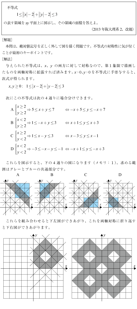 [B]複雑な絶対値式のグラフを描く問題(2013年阪大理系2)