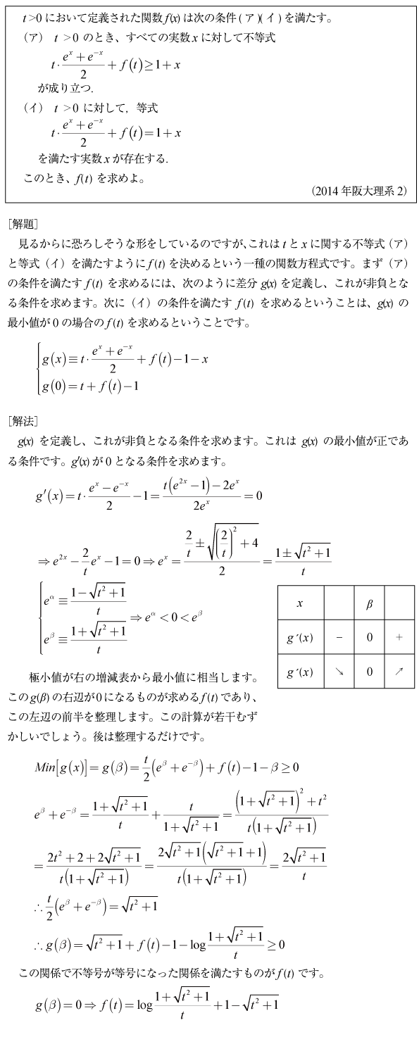 [C]双曲線関数を含む関数方程式の問題(2014年阪大理系2)