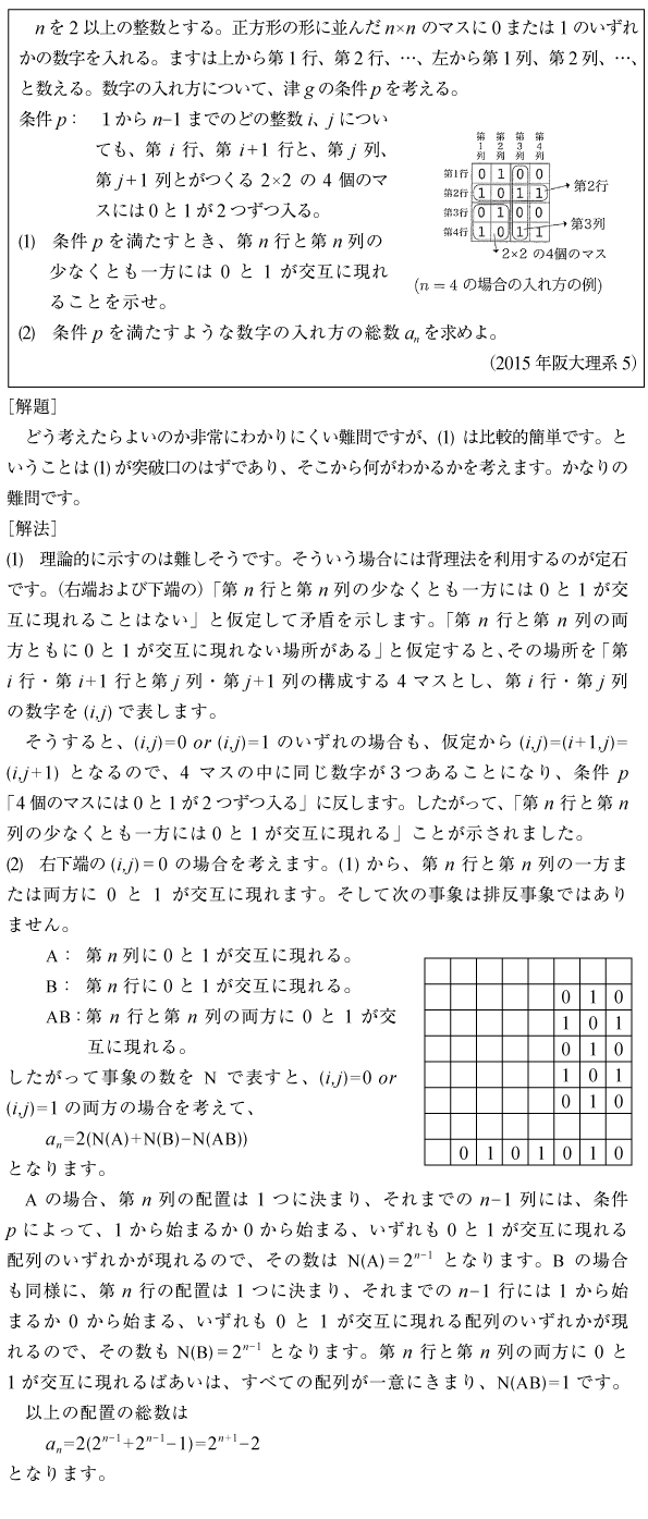 [C]0か1を同数並べる並べ方の数の問題(2015年阪大理系5)