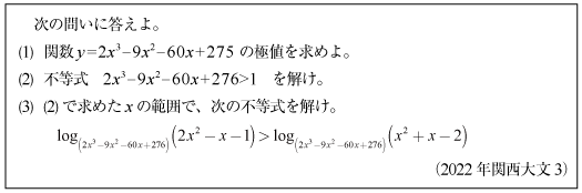 [B]底が3次関数の対数不等式の問題(2022年関西大文3)