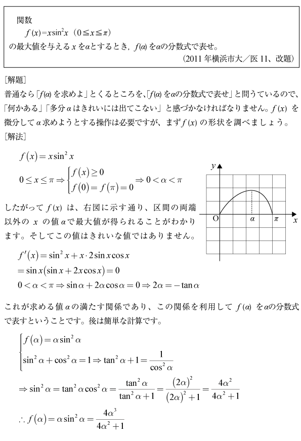 [B]三角関数の合成関数の最大値の問題(2011年横浜市大/医11)