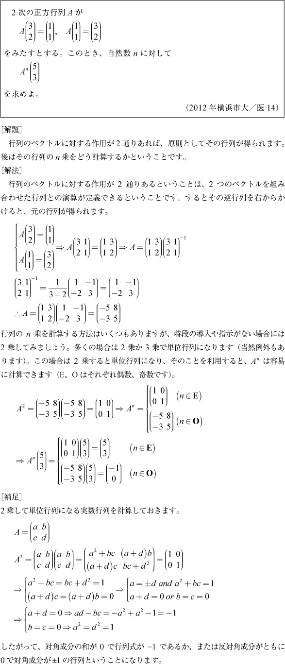 [B]行列のn乗を計算する問題(2012年横浜市大/医14)