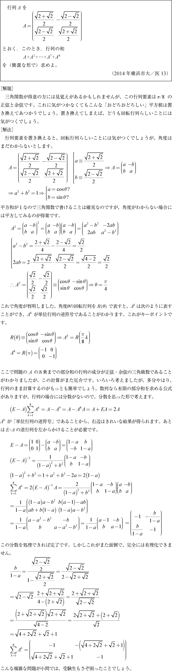 [C]n乗行列の部分和の問題(2014年横浜市大/医13)