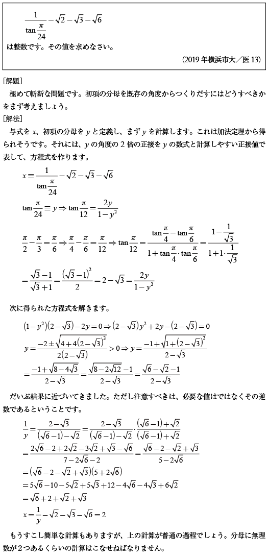 [C]三角関数と無理数の応用問題(2019年横浜市大/医13)