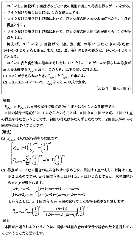 [B]コイン投げゲームの確率の問題(2015年千葉大/医8)