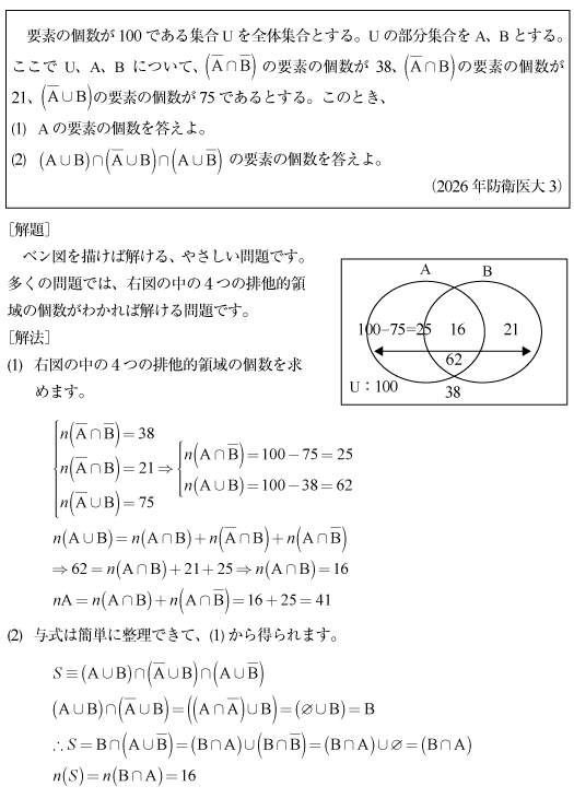 [B]ベン図で解ける集合の問題(2026年防衛医大3)