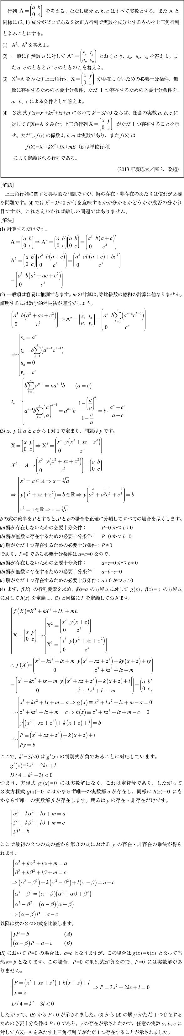 [C]3次関数行列に対する上三角行列解の存在を示す問題