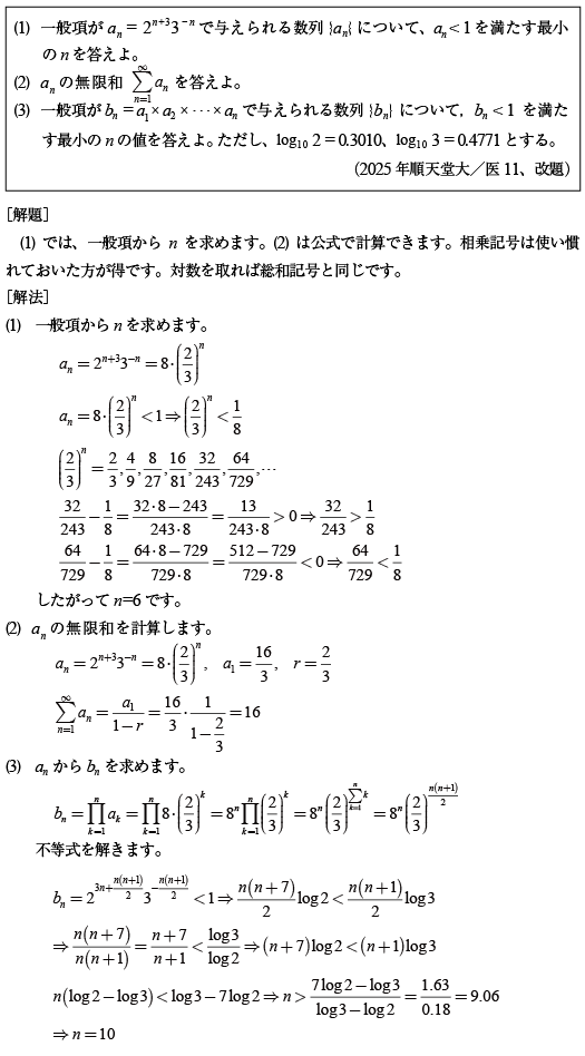 [B]積の数列の応用問題(2025年順天堂大/医11)