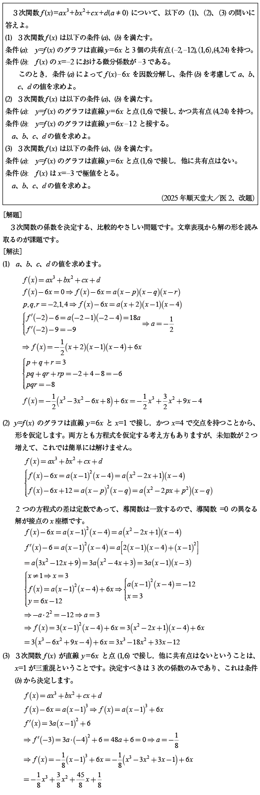 [B]3つの3次方程式に関する問題(2025年順天堂大/医2)