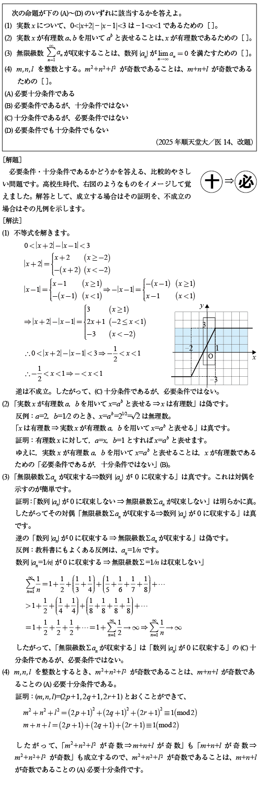 [B]必要条件・十分条件の問題(2025年順天堂大/医14)