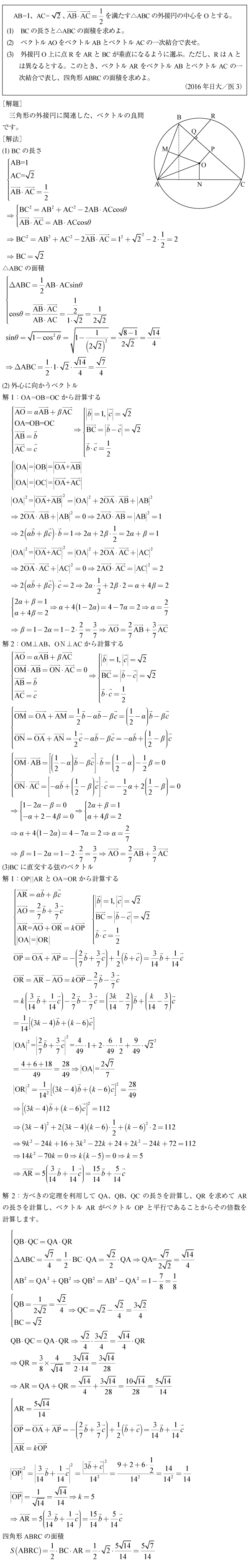 [C]三角形の外接円に内接する四角形の面積を求める問題(2016年日大/医3)